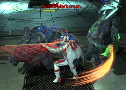 Moving around in DCU is a pleasure, especially when you choose the flight power. I especially like that my “Tech Wings” actually flap when I fly. The first thing I did when I exited the tutorial? Flew straight up until I hit the top of the game. The second thing? Turned off my flight power and dropped like a rock. Fortunately for our hero, there is no fall damage in DCUO. Seriously, though, why would you choose any other power? If you do, acrobatics and super speed allow you to run up walls (and some ceilings) and jump really far, so it’s not like there’s a lot you can’t access. Also, is it just me or does “Acrobatics” turn you in to Spider-Man? Whoops, wrong universe. I also like how your movement power gives you combat abilities later on. I’m guessing that flight’s powers are super nerfed, because otherwise I feel like everyone would choose it. Maybe that’s just me.