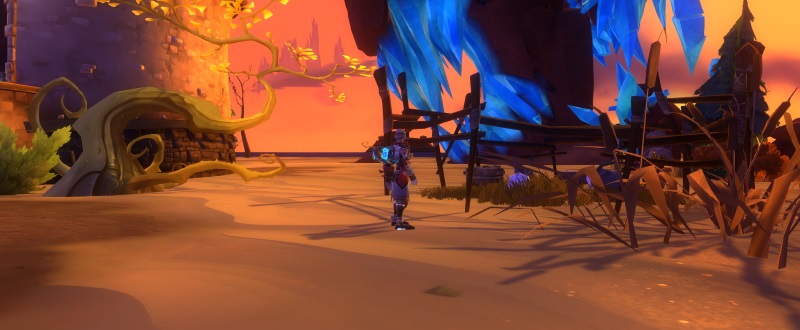 I also took a little time out to get a couple of characters up to 14 so I can have some extra housing plots to mess around with, as well as scouting out a potential alt (Spellslinger? Engineer? Warrior? None of them are jumping out at me yet, which bodes well for my medic). My main character’s housing plot (pictured above) is desert themed, featuring scattered scrubby plants, a rowsdower farm (filled with plushie rowsdowers and rowsdower statues, since I don’t think you can get real ones), and even a crashed UFO. While I really like my house, it kind of rules out a lot of decor options. The first of my two new plots is going to be winter/ice themed. I say “going to be” because so far all it has is a few snow-covered rocks and the wintersday sky from the cash shop (which is beautiful, by the way). I’m holding off on dropping the 2 plat (ugh) for the snow-covered ground until my medic is a little more financially stable, and without that it loses a lot of its effect. The other plot is a bit of a hodgepodge at the moment. It’s where I dumped all of my space ship parts from the event they ran a while back, and I’m hoping to take that theme and run with it. It’s my engineer’s plot, so I’m hoping to make a kind of garage for ship building and repairs, which also happens to make it a great place to put all of my crafting and gathering stations. I’ll be sure to post some screenshots if/when they are a little more interesting.
