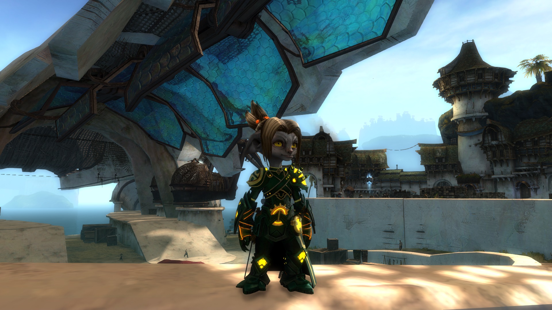 Probably the most interesting thing about my August in Guild Wars 2 was also a new character. I, of course, preordered Guild Wars 2: Path of Fire. This time around, the more deluxier packages are actually really nice. I bought the cheapest Heart of Thorns package because nothing in the nicer packages were really that exciting (a mini, a PvP finisher, a guild hall decoration, and a lame glider skin… meh), but this time around, ArenaNet actually talked me into buying the deluxe package (Sunspear outfit, a character slot, a makeover kit, and one of those passes to one of those premium crafting area things they’ve been doing recently), and, of course, if you’re buying the deluxe package, you might as well drop the extra $25 to get $50 worth of gems in the ultimate package. I was planning on making a new mesmer anyway, because I really like the Heart of Thorns elite spec as well as what I’ve seen of the Path of Fire one. Couldn’t I have just switched back and forth for free? Absolutely, but I never turn down an excuse to make a new character, and if I didn’t make a new character, that level 80 boost would go to waste, so my new mesmer was born. His name is Random Axes Memory, which celebrates both my love of computers and my love of puns. The new Path of Fire elite spec, of course, gives mesmers access to axes, so I’m really banking on the fact that I’m going to like it, or this play on words would make no sense.