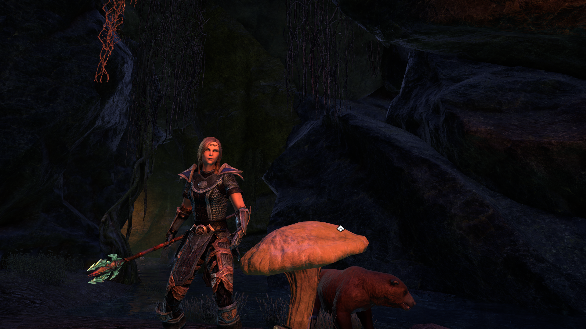 While my first warden started out doing the Morrowind story, this one went through the main vanilla story. Because levels don’t really matter anymore, you can pretty much do it all as soon as you get to your faction’s first city where The Prophet is. I got all the way to the penultimate chapter by the time I was level 15 (apparently, even though it ignores level for the entire rest of the story, you can’t do the final chapter until you’re actually level capped), and I spent a few days doing that and a few other quests that interested me around Stonefalls, but, when it quickly became clear that my new tank warden was my new main, I decided it was time to start on Morrowind again. Some day I’ll go back and see all that the vanilla game has to offer, but right now I feel like I should experience the shiny new expansion zones while they’re still somewhat populated.