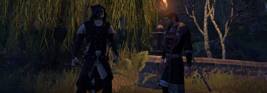 Anyways, that was last year, last expansion. I was more than a little afraid that I was going to have similar feelings about Blackwood, and if I did, it might be the end of my time in ESO. After all, it’s a retread of a locale from another TES game I own but barely played with an even more edgy Macguffin: Hellgates run by a four-armed devil who wants to destroy the world for no apparent reason. But so far, the story has had a lot less of the “Oh noes, the end times are upon us” stuff that I thought I was going to find, but rather feels more a mystery novel (something that the NPCs keep reminding us, which I find kind of immersion breaking, but whatever). Also, choosing Eveli Sharp-Arrow, a spunky Wood Elf who you may remember as the best part of the Orsinium DLC, to be the main character of this one, and then pairing her with Lyranth, a sarcastic daedra from Coldharbor, was a great way to keep things light, even when you do get to the doom and gloom parts.
